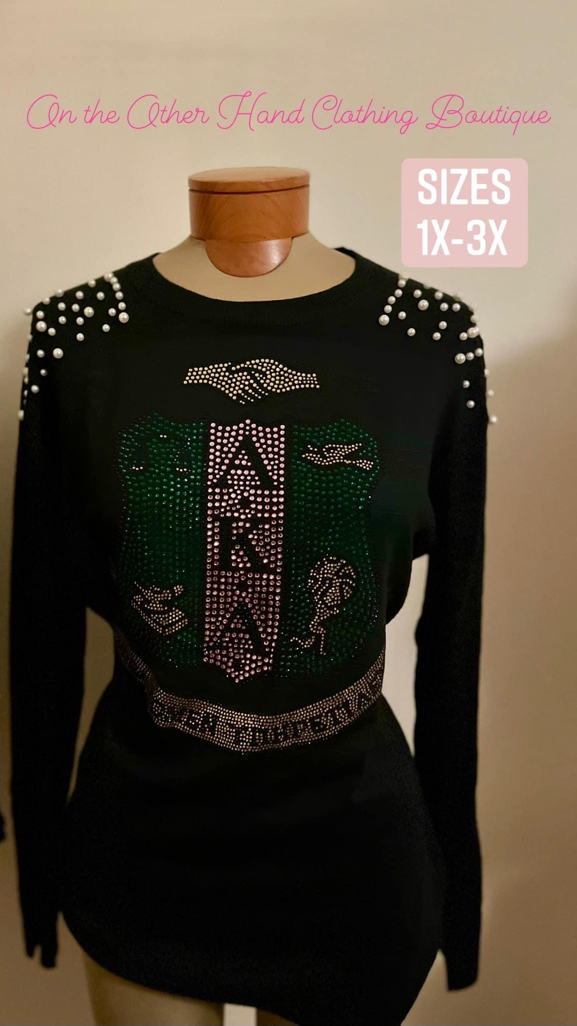 Sizes 13-18 Black with pearls on sleeve
